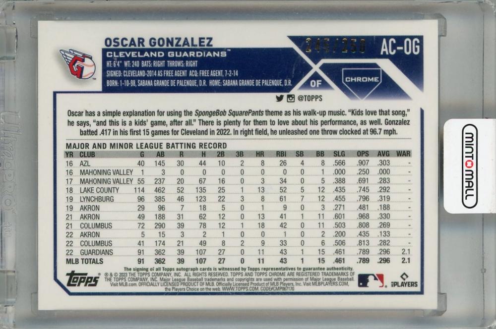 2023 Topps Chrome Update Series Oscar Gonzalez Chrome Update Autographs Purple #AC-OG RC ※へこみあり【245/250】 Cleveland Guardians