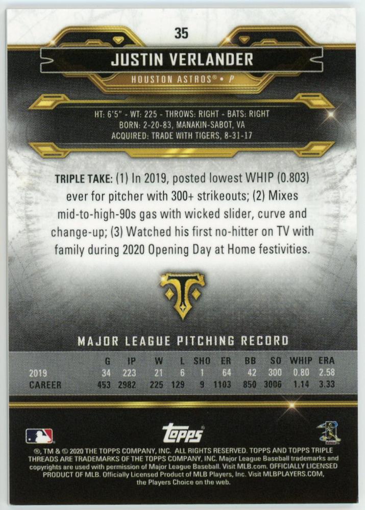 2020 Topps Triple Threads Amethyst #35 Justin Verlander 270/299