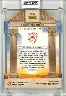 2023-24 Panini Crown Royale Euro League Sasha Vezenkov #12 Pillars of the Game【14/99】 Olympiacos Piraeus