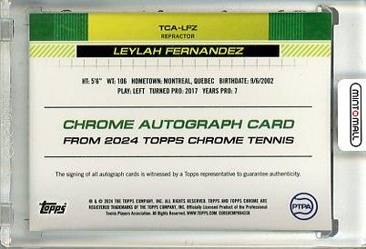 2024 Topps Chrome Tennis Leylah Fernandez #TCA-LFZ Autographs Ⅱ Refractors【10/99】