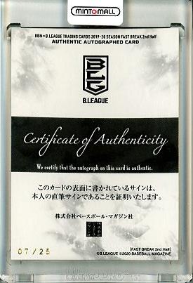 2019-20 BBM B.LEAGUE FAST BREAK 2nd Half 西川貴之 インサート直筆サインカード【07/25】