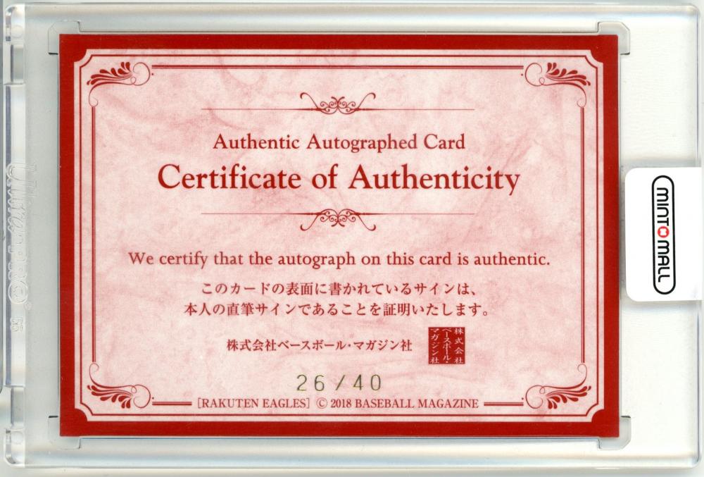 2018 BBM 東北楽天ゴールデンイーグルス 岩見雅紀 直筆サインカード【26/40】