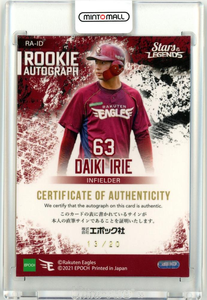 2021 EPOCH 東北楽天ゴールデンイーグルス Stars&Legends 入江大樹 ルーキー直筆サインカード【13/20】