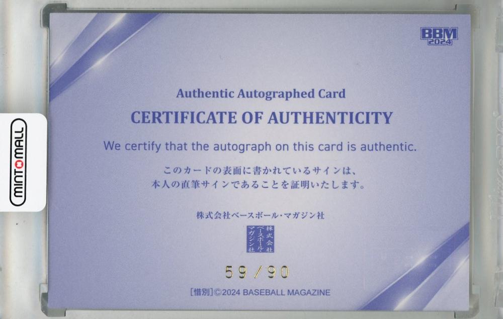 2024 BBM 惜別 大下佑馬 直筆サインカード【59/90】 東京ヤクルトスワローズ